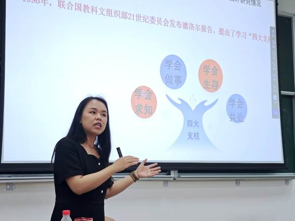 在为何进行项目式学习的部分中,她立足联合国教科文组织“四大支柱”理论框架,结合《深化课改意见》《教育机制改革意见》等政策文件,强调新时代教育应聚焦“认知、合作、创新、职业”四大核心能力培养,构建以文化传承为核心的综合素养培育体系。通过项目式学习,教师能够引导学生直面真实问题,在解决过程中实现知识建构与德性养成。