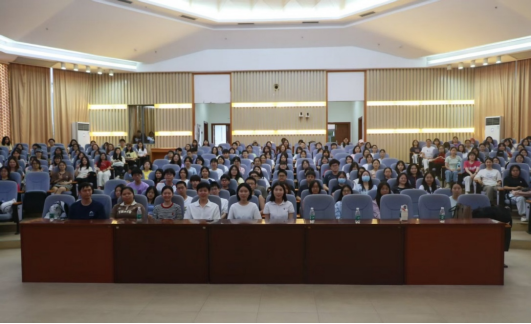 最后,全体参会人员合影留念,分享会在热烈氛围中结束。整场分享会内容翔实、互动深入,为学院学子提供了涵盖升学深造策略、职业发展方向、核心能力培养等维度的全方位、系统性指导,为他们在未来充满无限可能的道路上,锚定方向,绘制出更为清晰、自信的人生蓝图。